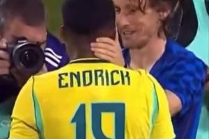 好久不见!19岁恩德里克开心抱起40岁莫德里奇,两人赛后寒暄