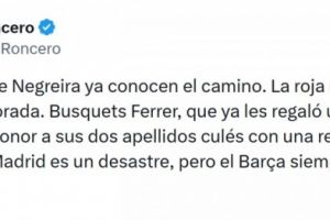 《阿斯报》主编、皇马球迷龙赛罗社媒写道:“内格雷拉的继承者们已经摸清了门道。这是本赛季至今最明显的红牌。布斯克茨·费雷尔——这位已经在巴列卡斯送给过他们一个点球的裁判——用一次可耻的改判,完美地印证了他的两个带有巴萨色彩的姓氏,皇马表现确实糟糕,但巴萨永远是12人作战。”