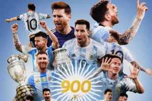 体育资讯3月19日讯 美洲杯1/8决赛次回合,迈阿密国际1-1战平纳什维尔,梅西达成生涯900进球里程碑。