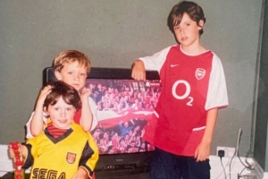 体育资讯4月20日讯 英超第33轮,天王山之战,阿森纳客场1-2不敌曼城。著名阿森纳球迷摩根在社媒上晒出,22年前阿森纳首次夺冠时和现在两个时期,三个儿子的合照。