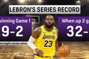 当领先2场时(包括2-0和3-1),系列赛32胜0负。